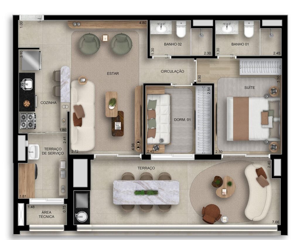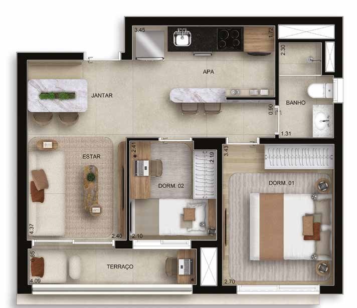49m² - Planta 2 Dorms - Final 1, 2, 7 e 8